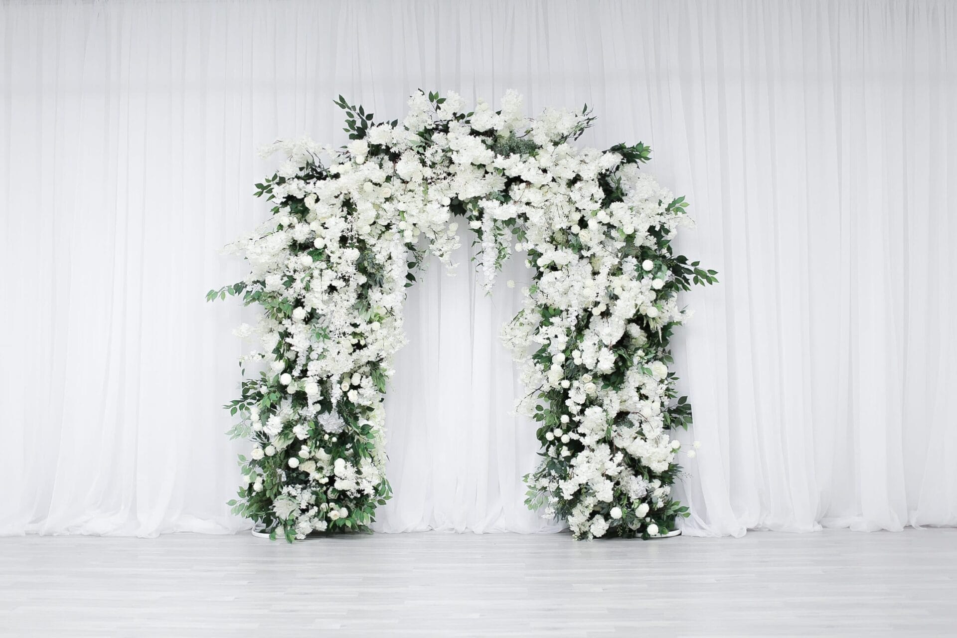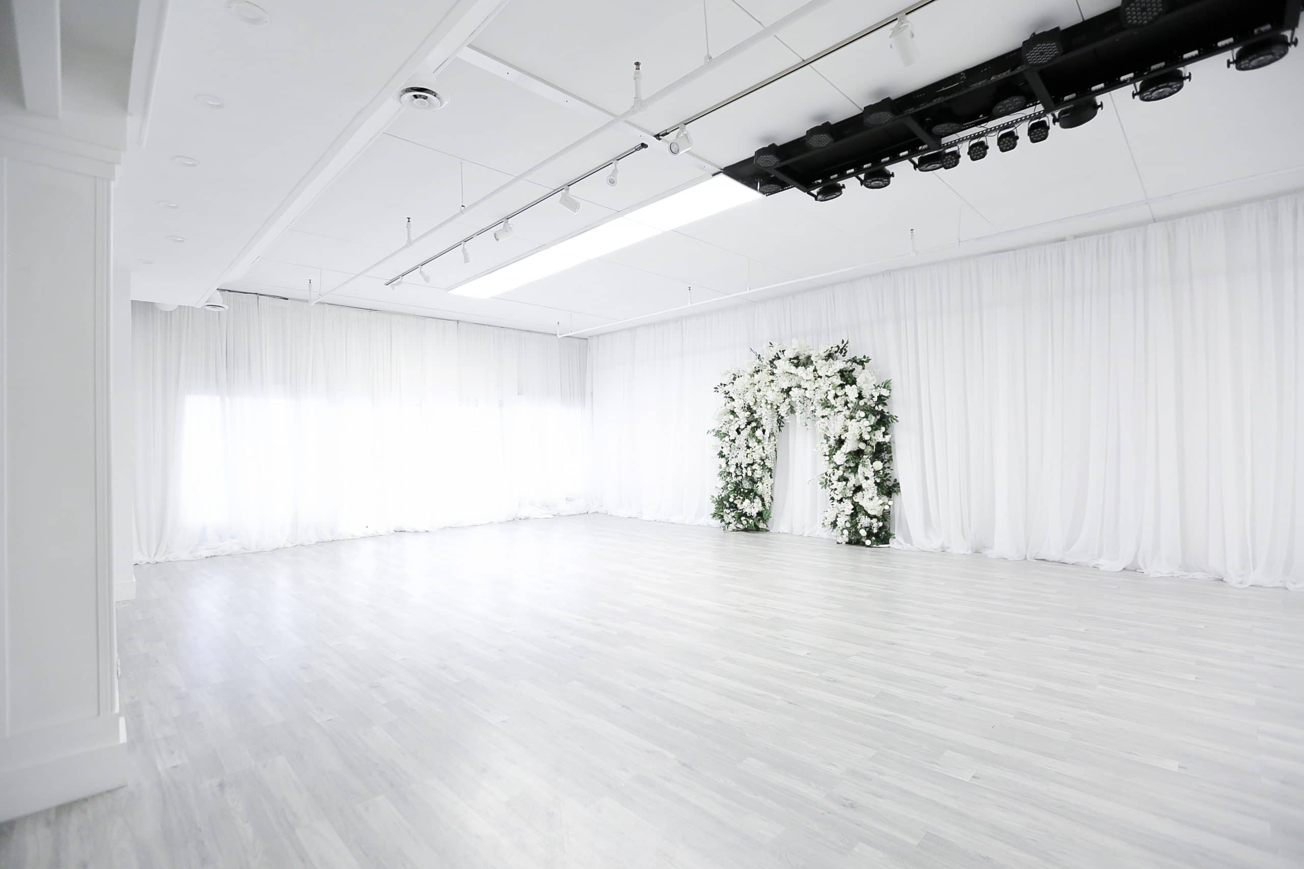 General props & furniture included: arch, love seat, props, accent table, accent chair, mirror, and plants. We do not guarantee specific decor, props or furniture but if you’d like something specific, please let us know and we’ll confirm availability.